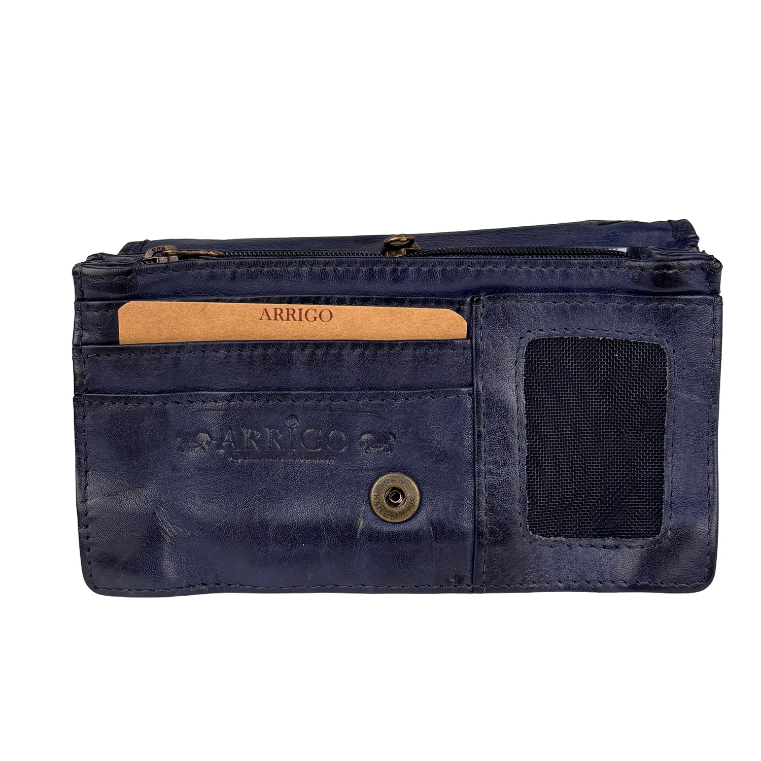 Ontdek de perfecte combinatie van stijl en functionaliteit met de Donkerblauwe Leren Damesportemonnee van Arrigo. Deze portemonnee is gemaakt van hoogwaardig, zacht gewassen runderleer met een subtiele vintage finish en met de hand afgewerkt voor een luxe en duurzame uitstraling. Het fijne stiksel en de ambachtelijke details zorgen voor een robuust en elegant design.