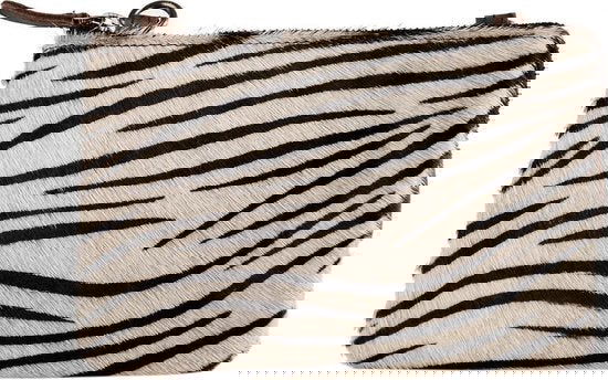 Dames Crossbody Tas van Donkerbruin Leer met Vacht en Zebra Print