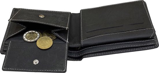 - Muntgeldvakje met Druksluiting: Een handig vakje, volledig van leer, houdt je muntgeld veilig en toegankelijk.