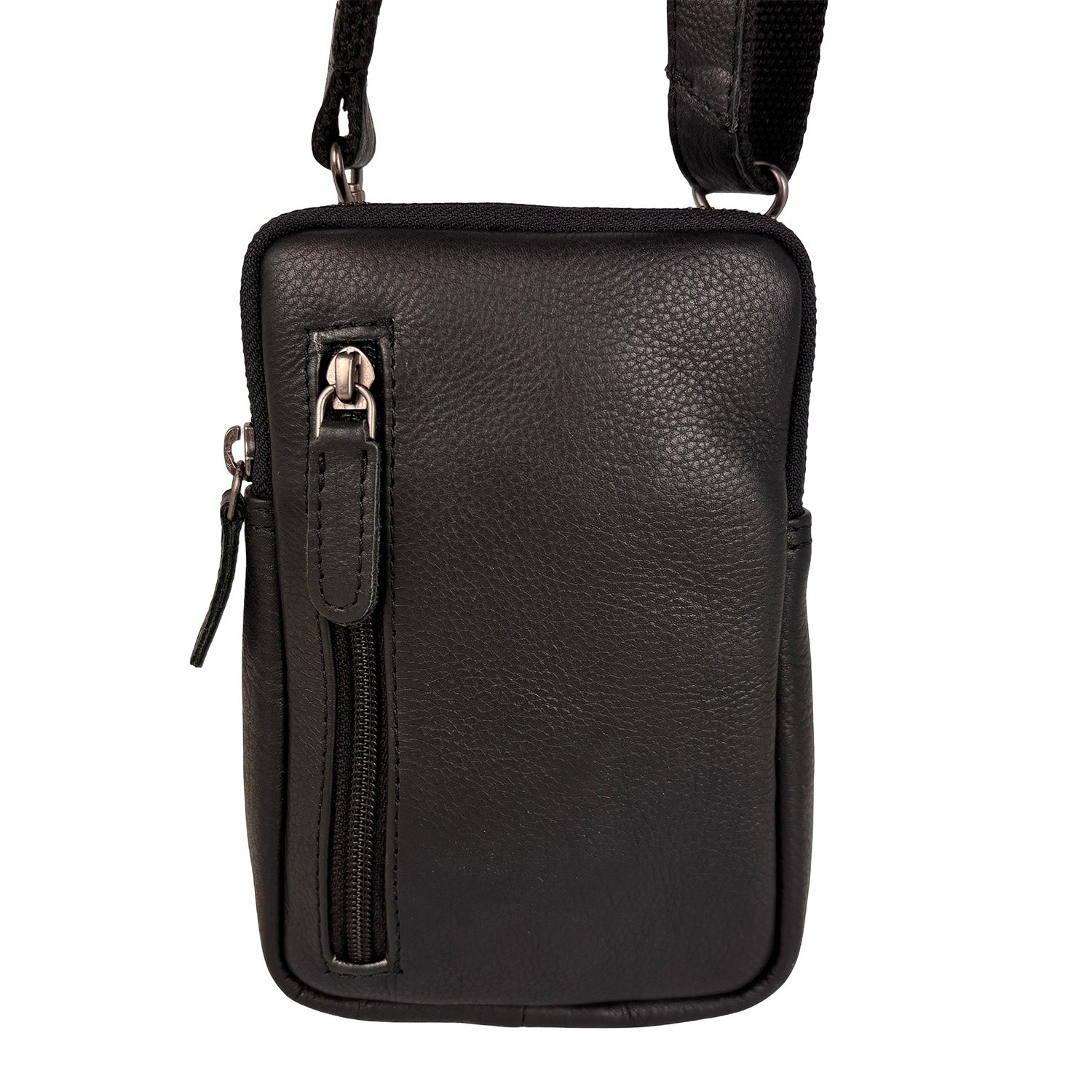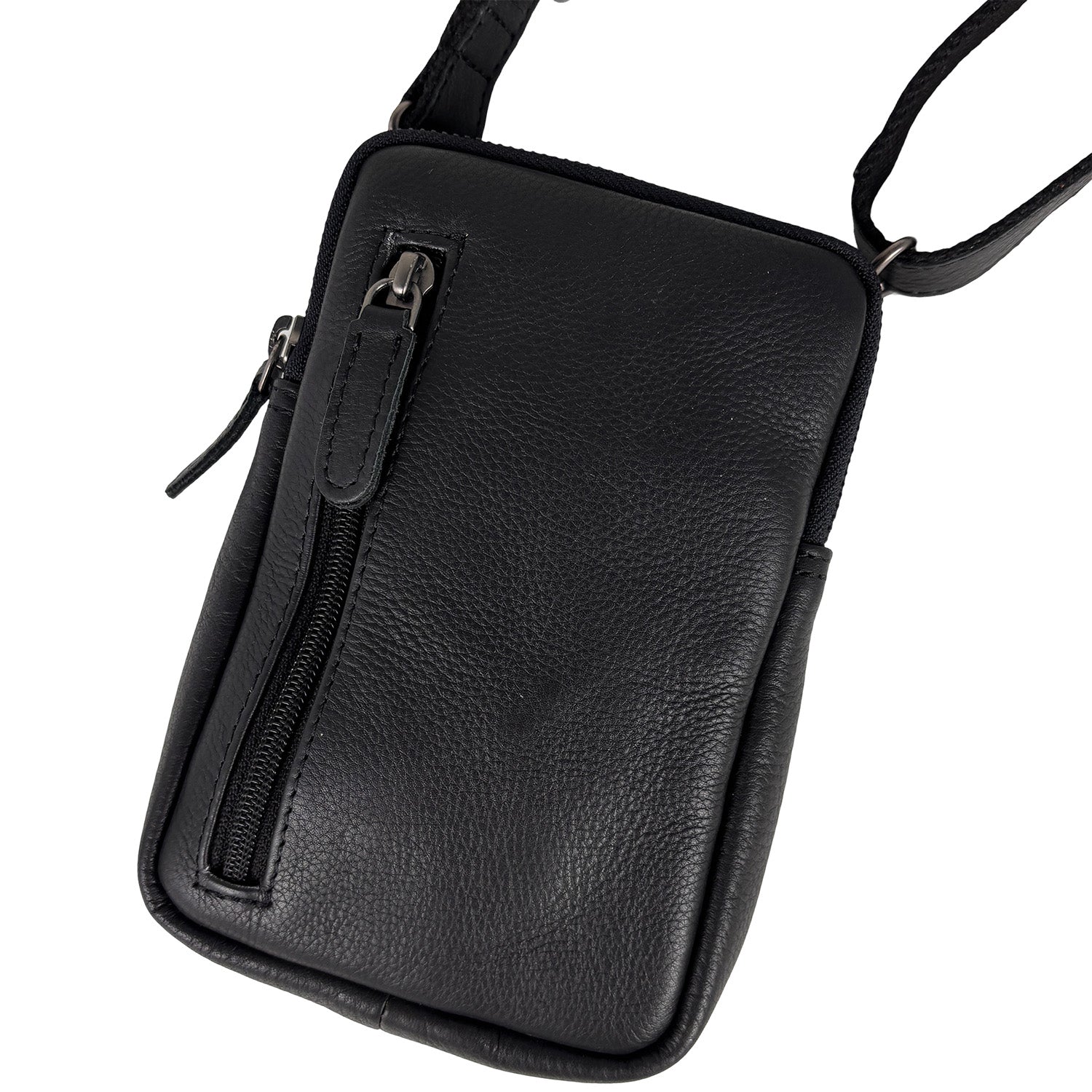 Zwart rundleren telefoontasje
